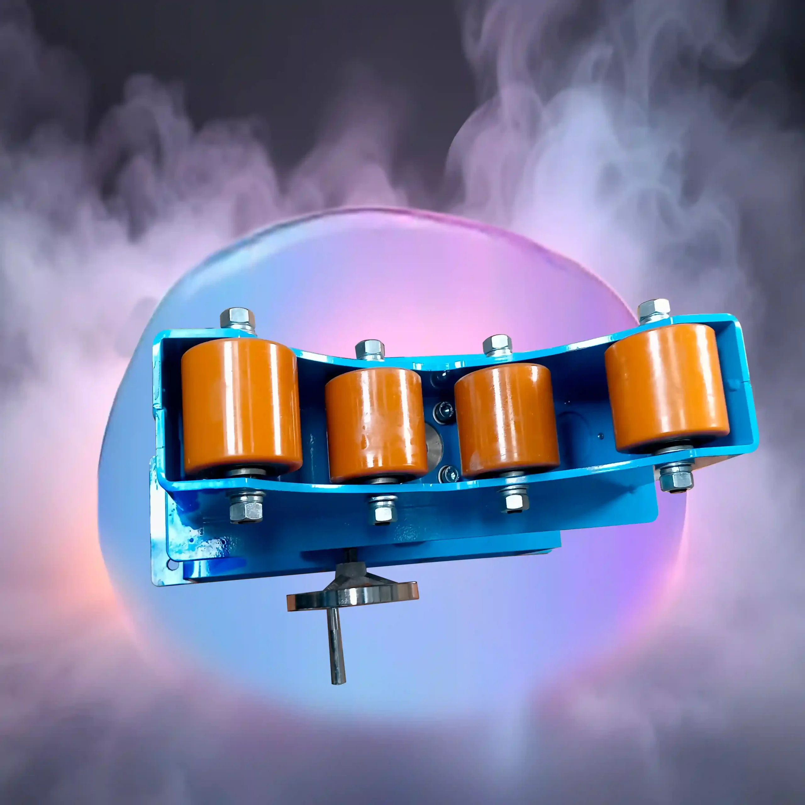 Elevador para tubo se utiliza para soportar el peso del tubo en rotación, ya que cuenta con 4 rodillos de carga. Los rodillos centrales se utilizan para carga de diámetros pequeños, y los rodillos externos para carga de diámetros mayores. Cuenta con una manivela para elevar el soporte de carga.