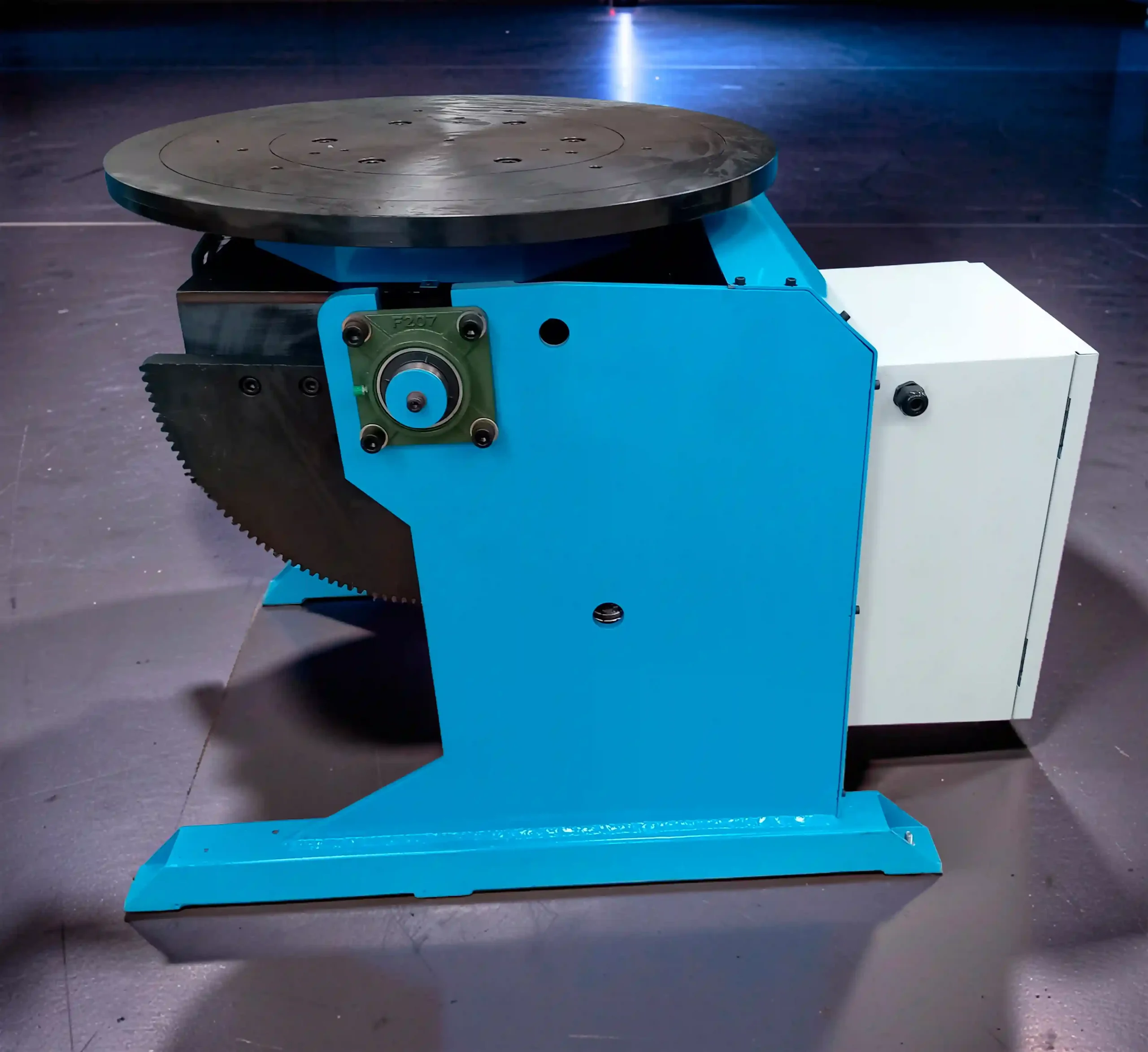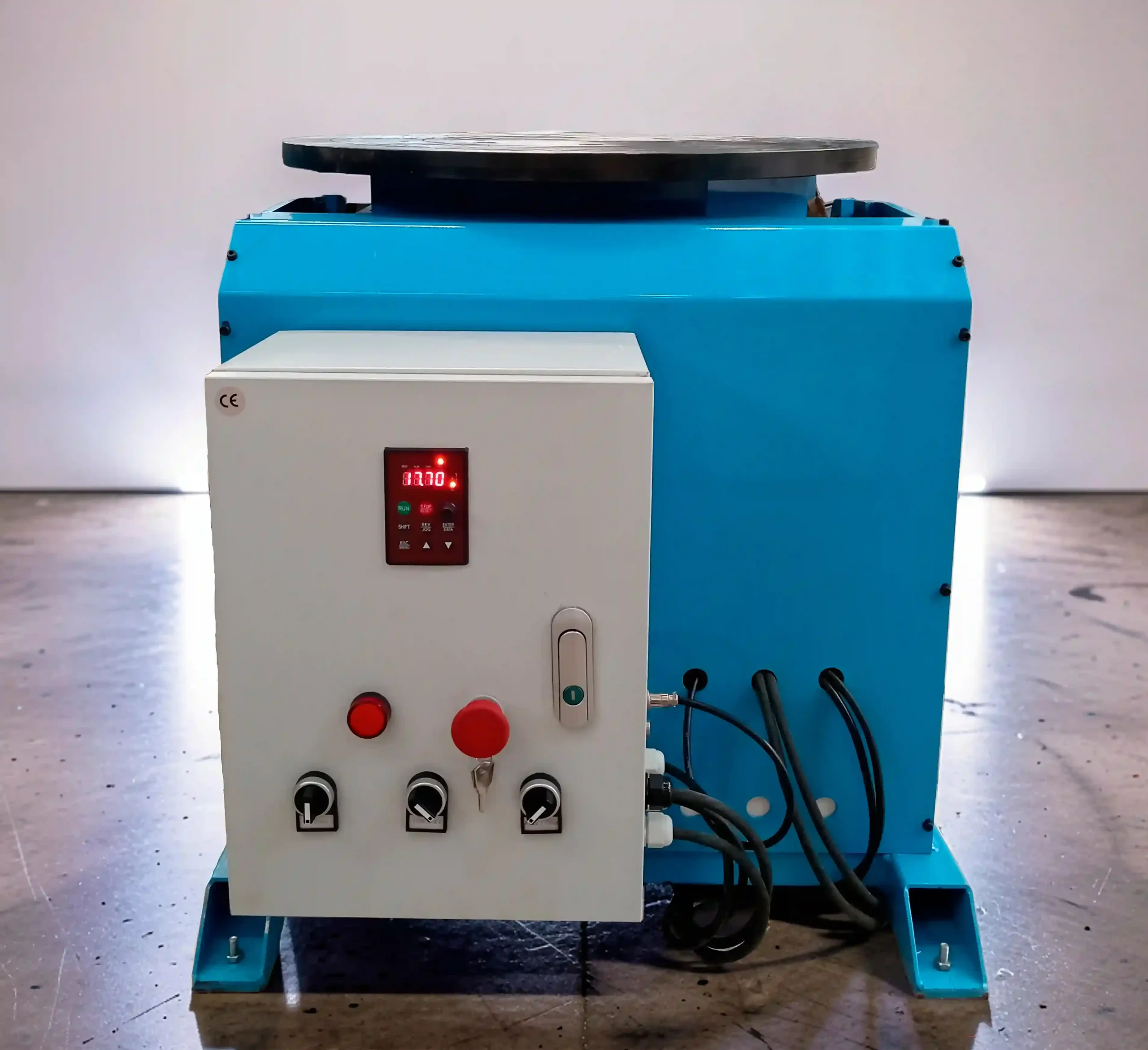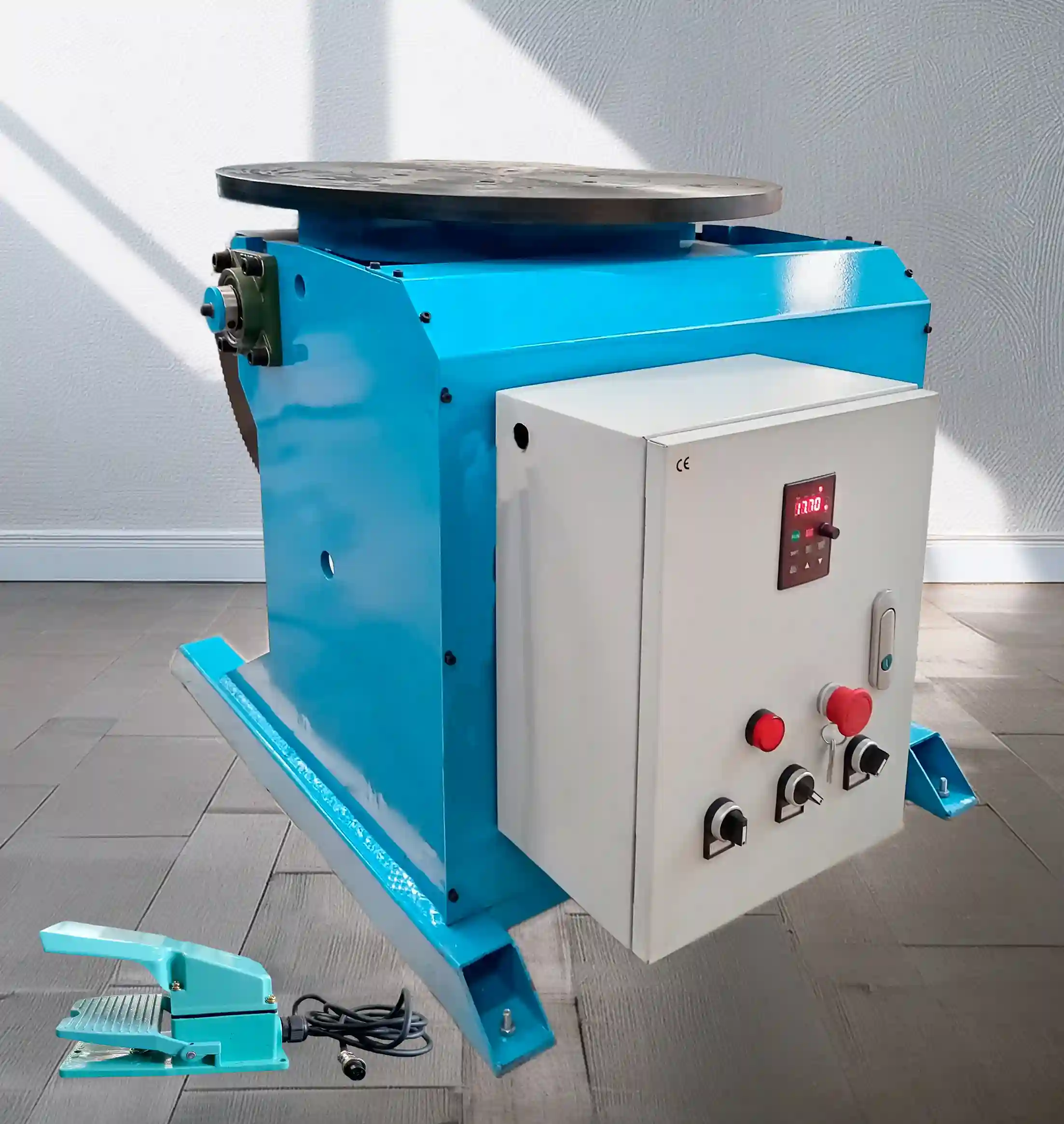 El posicionador facilita la manipulación y la fabricación de objetos que requieran de soldadura o corte a su alrededor, como la soldadura de cilindros, recipientes, tanques, tubería, etc. La sujeción de la pieza se puede realizar ya sea atornillándola directamente al plato del posicionador o utilizando un chuck (pregúntenos por precios). En muchos casos para cortar o soldar se mantiene fija la antorcha mientras se hace girar el posicionador. En modo automático el operador tiene la opción de programar el tiempo de rotación y en modo manual la rotación se activa presionando el pedal, también puede elegir la dirección de giro y regular la velocidad.