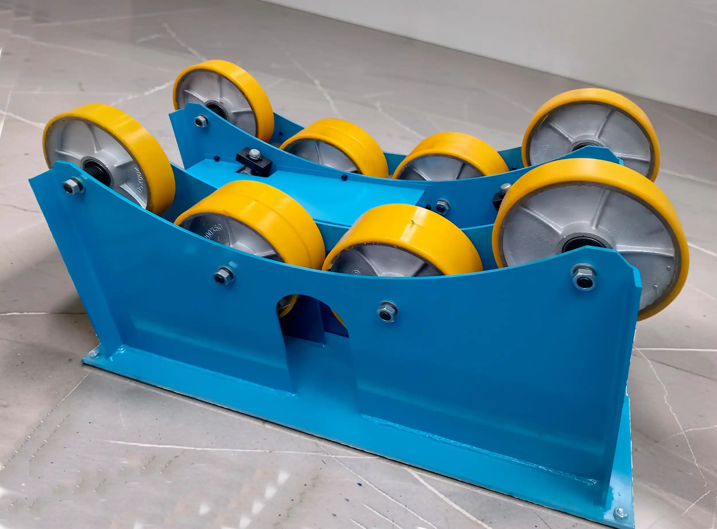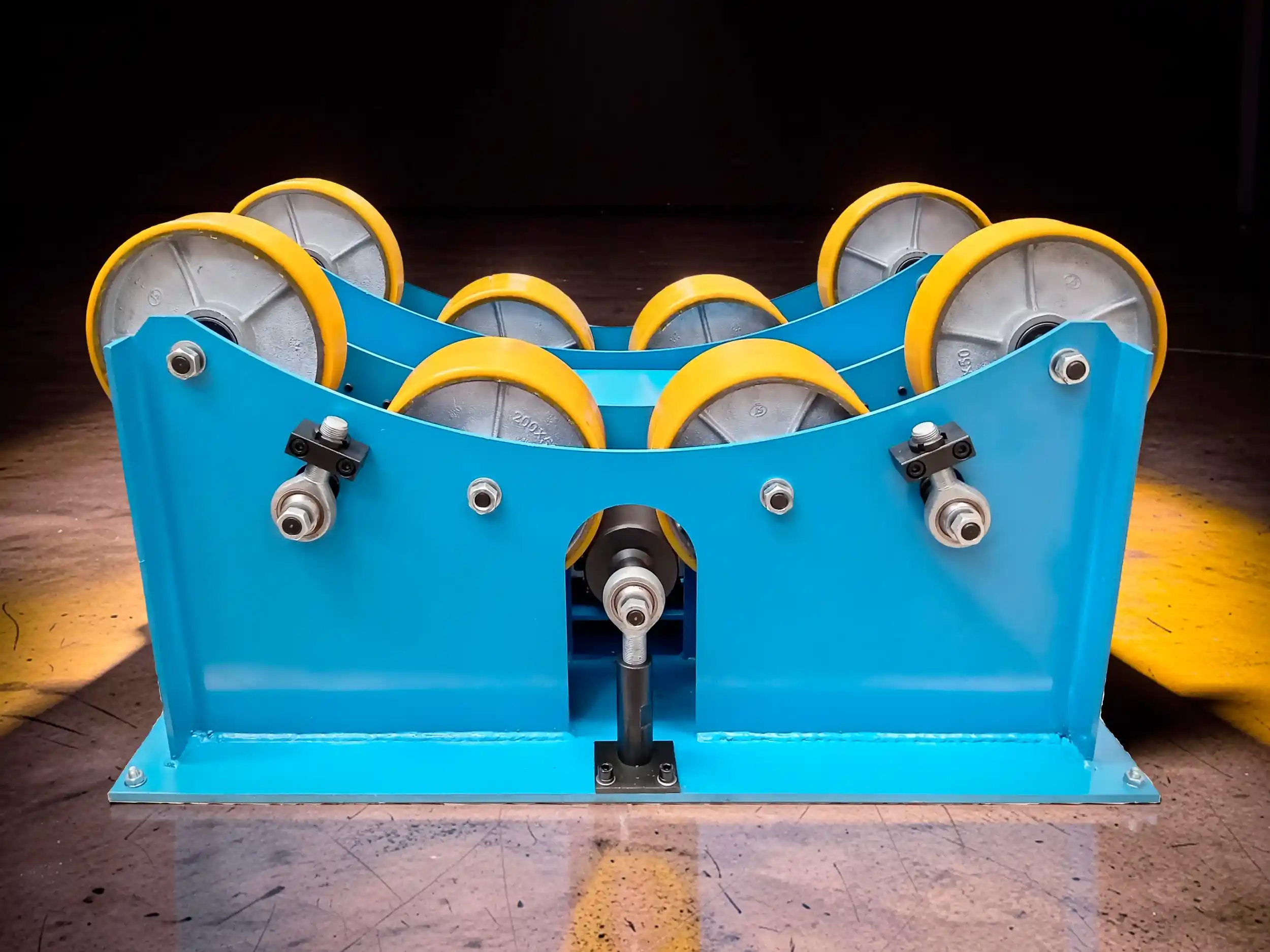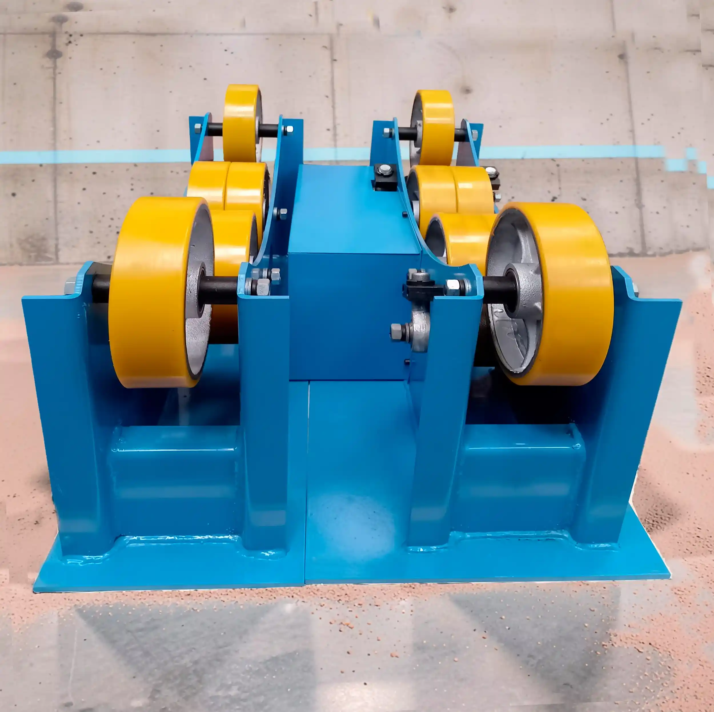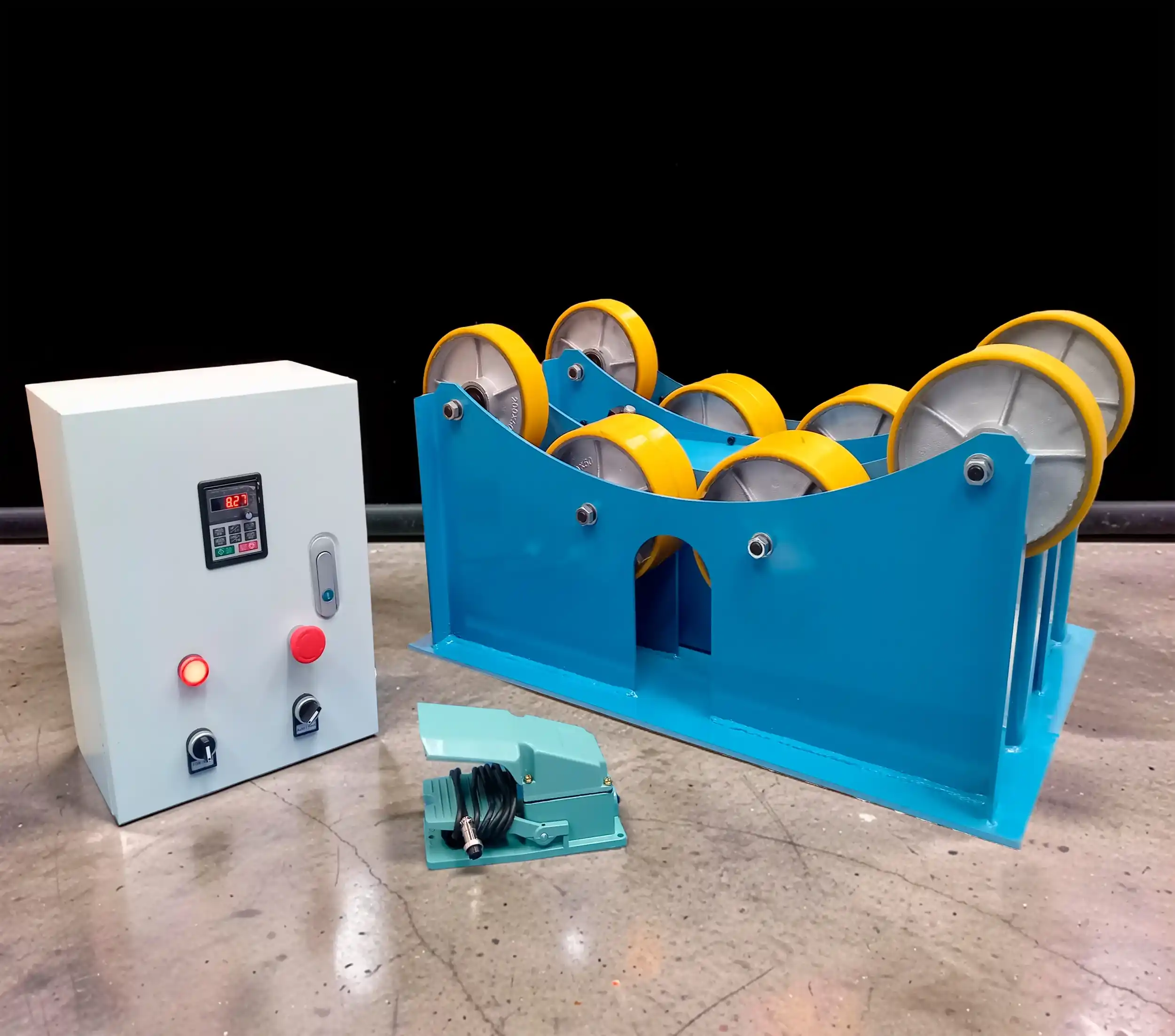 Rotador de tubo, facilita la manipulación de tubo para corte o soldadura, con capacidad de carga de hasta 3000kg. Cuenta con perilla para regular la velocidad de rotación, selector para la dirección de giro y selector de modo automático y pedal